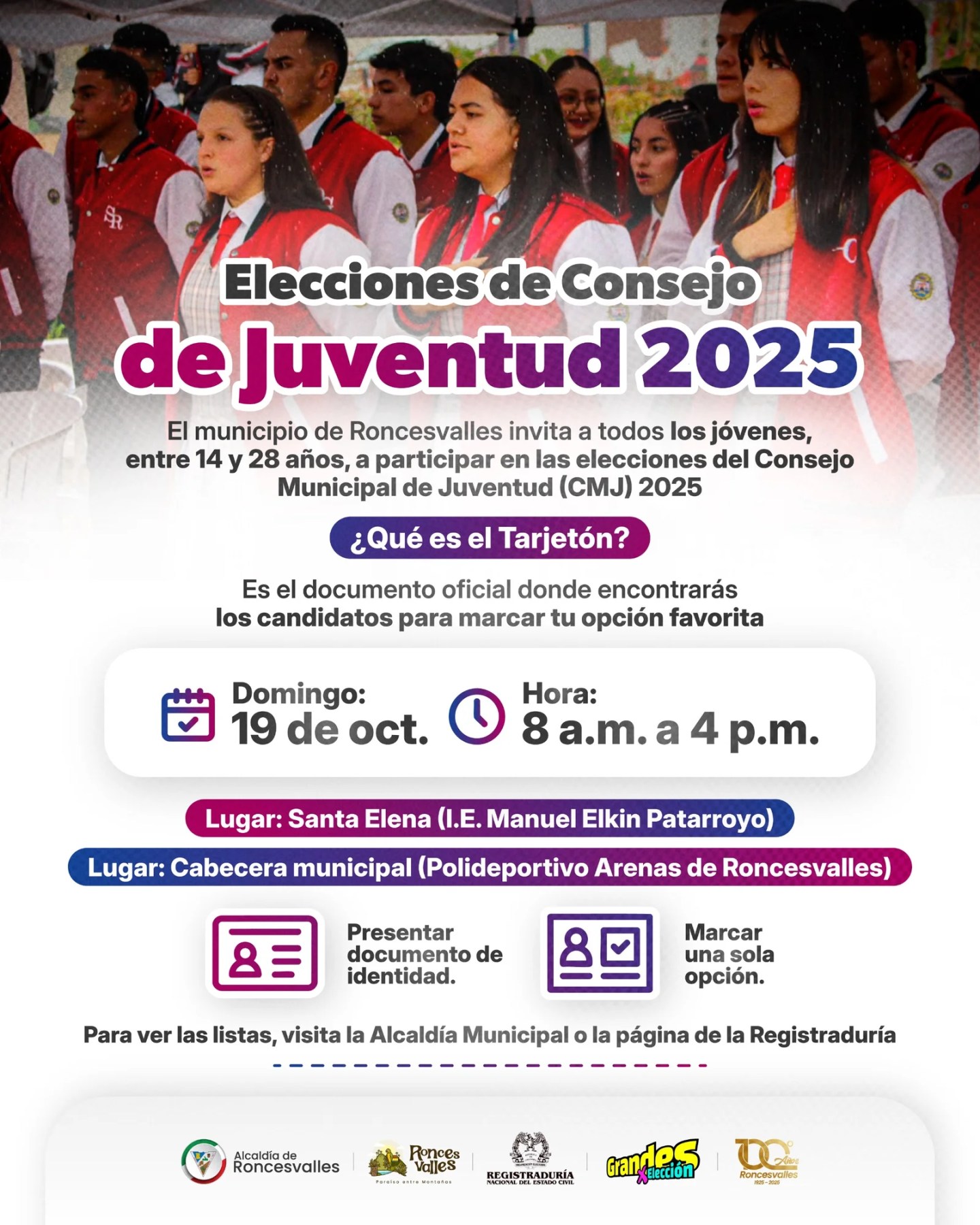 📍 Lugar de votación: Santa Elena, I.E. Manuel Elkin Patarroyo.
